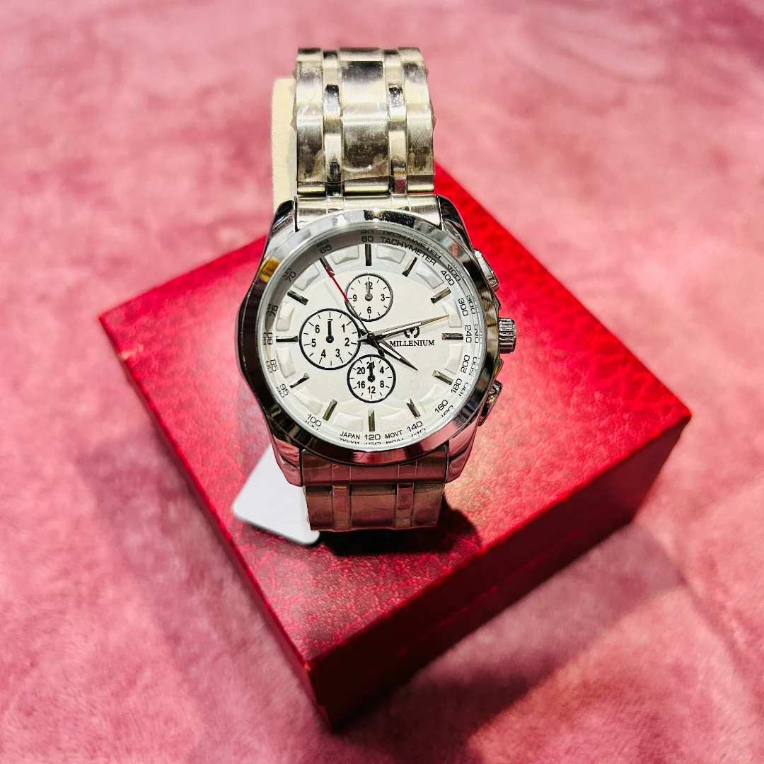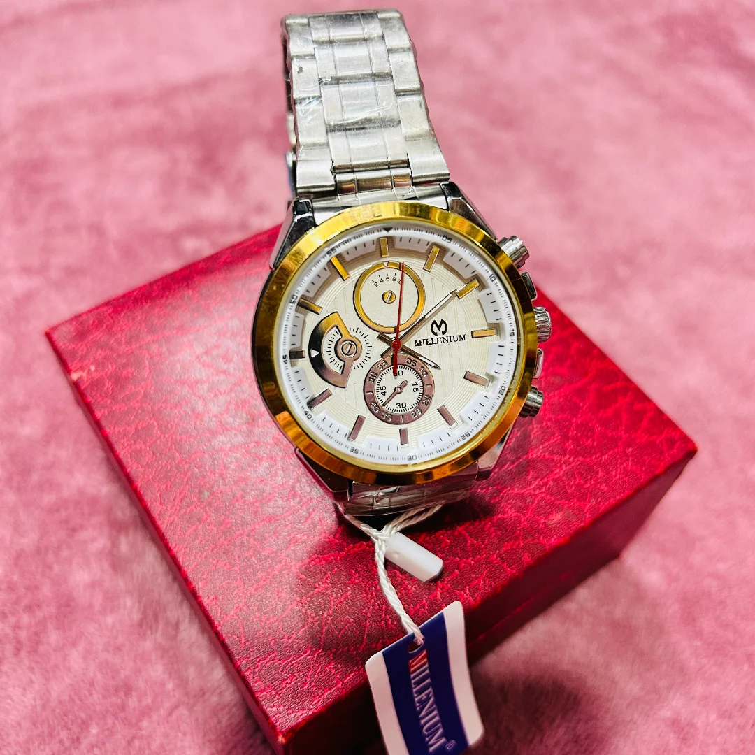 Introducing the Millennium Watch, a perfect blend of style and precision. Designed for those who appreciate sophistication, this watch features a sleek, minimalist design with a durable stainless-steel case and a crystal-clear dial. The comfortable, adjustable strap ensures a perfect fit for every wrist, while the high-quality quartz movement guarantees accurate timekeeping.